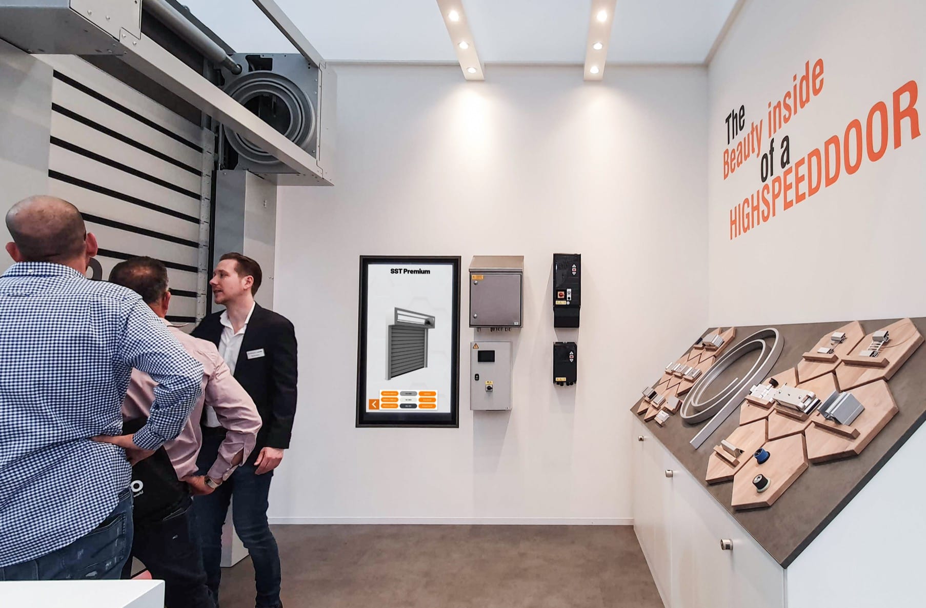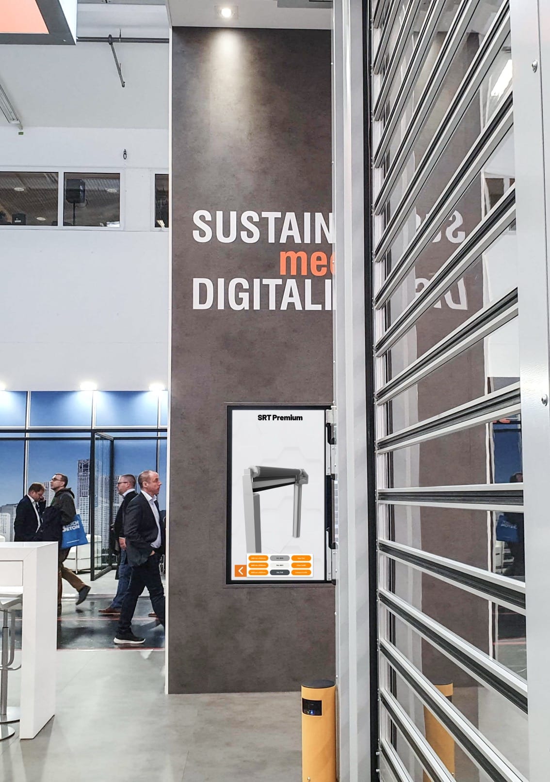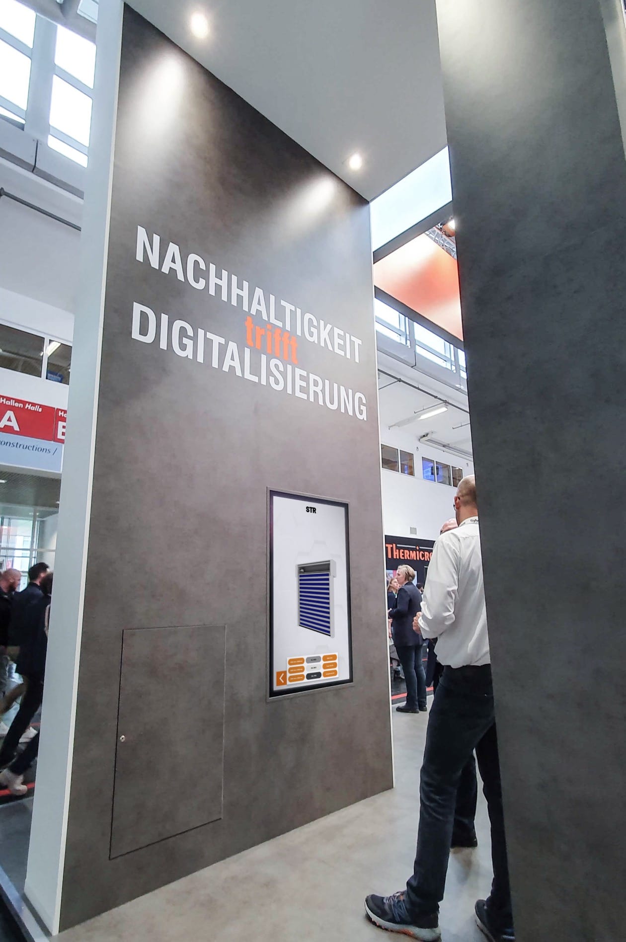 Die App wurde als Kiosk-System in Touchscreens am Messestand eingebettet. Besucher konfigurieren selbstständig Produkte, erkunden die interaktive „BIM City" (3D-Stadtansicht nach Branchen) und hinterlassen Kontaktdaten. Das Vertriebsteam erhält qualifizierte Leads mit bereits konfigurierten Produkten.